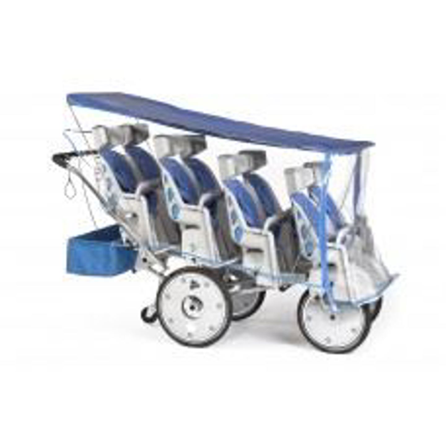 Til de minste barna i barnehagen har vi en 4-manns vogn og en 8-mannsvogn til de litt lengre turene for de minste barna. Det er veldig populært å sitte på med disse "doningene". 8-manns vognen har ulike høyder på setene, slik at alle ser fremover og de kan legges litt bakover om barna sovner.
